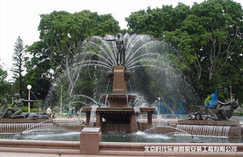 雕塑噴泉一般應用于大型廣場的設計中,雕塑為靜態美,噴泉則為動態美,動于靜的結合創造出一個完美的景觀藝術。